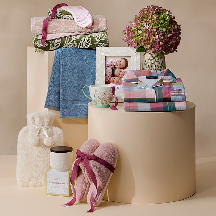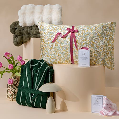 Relaxation is the ultimate gift. Treat her to snuggly fabrics, plush textures and items that offer calm and comfort.