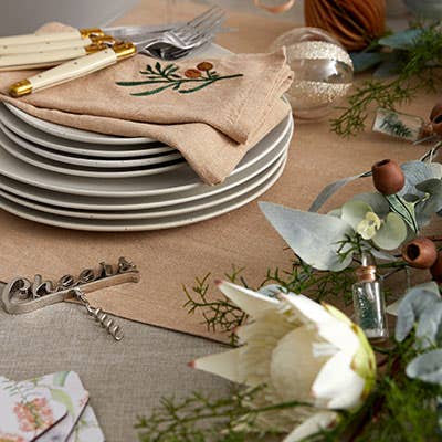 Welcome guests to your Christmas feast with a beautiful place setting. Start with your dining set and plan your look around this theme. This year, we are loving an Australian-inspired look, featuring Flowering Gums and Wattles. The pops of red and green in these botanicals tie in beautifully with an Australian Christmas style, while also bringing a touch of nature indoors.