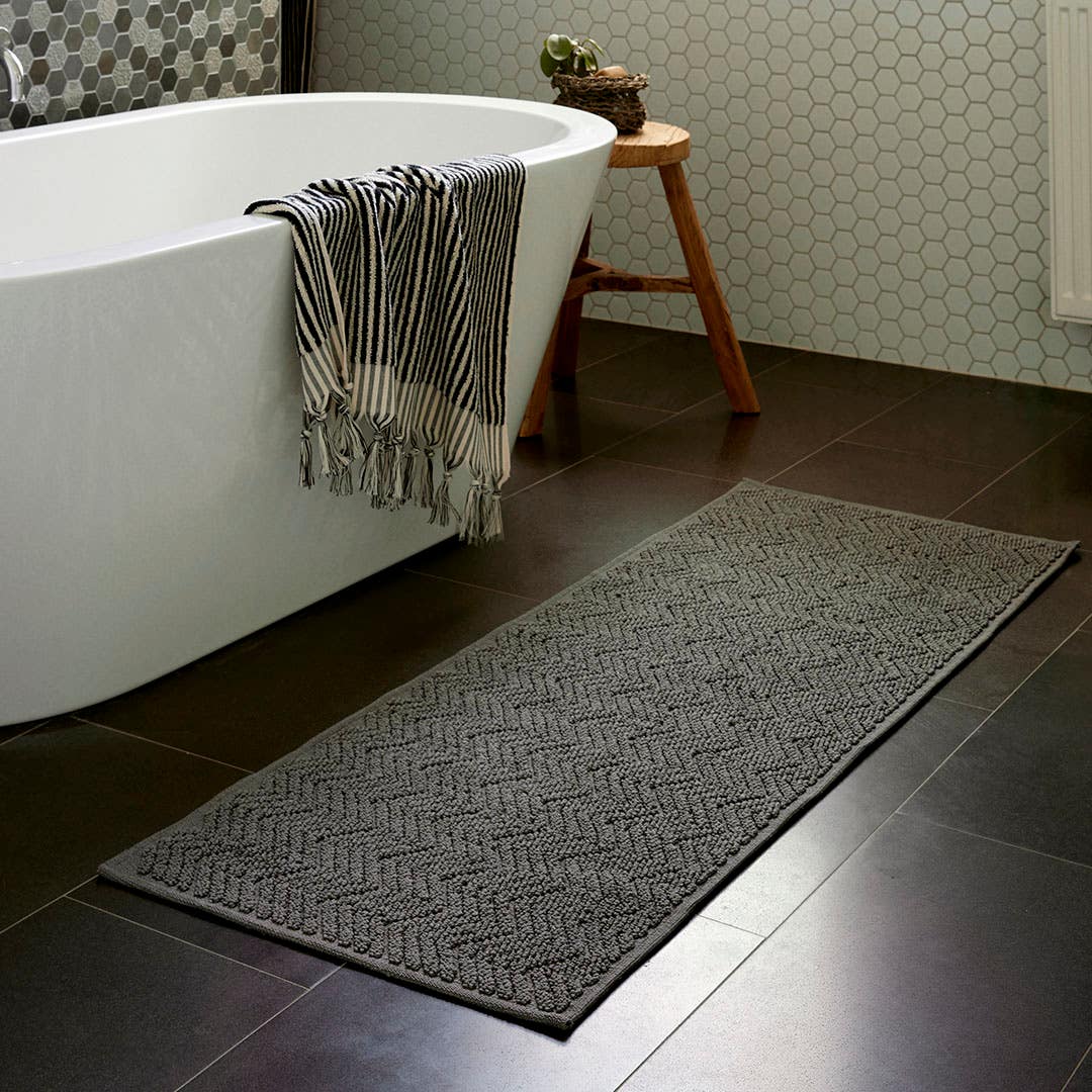 Create a classic bathroom style with the Chevron Bath Runner in Charcoal. Complete with a non-slip silicone backing, this versatile bath runner features a simple geometric design and is wonderfully easy to coordinate.