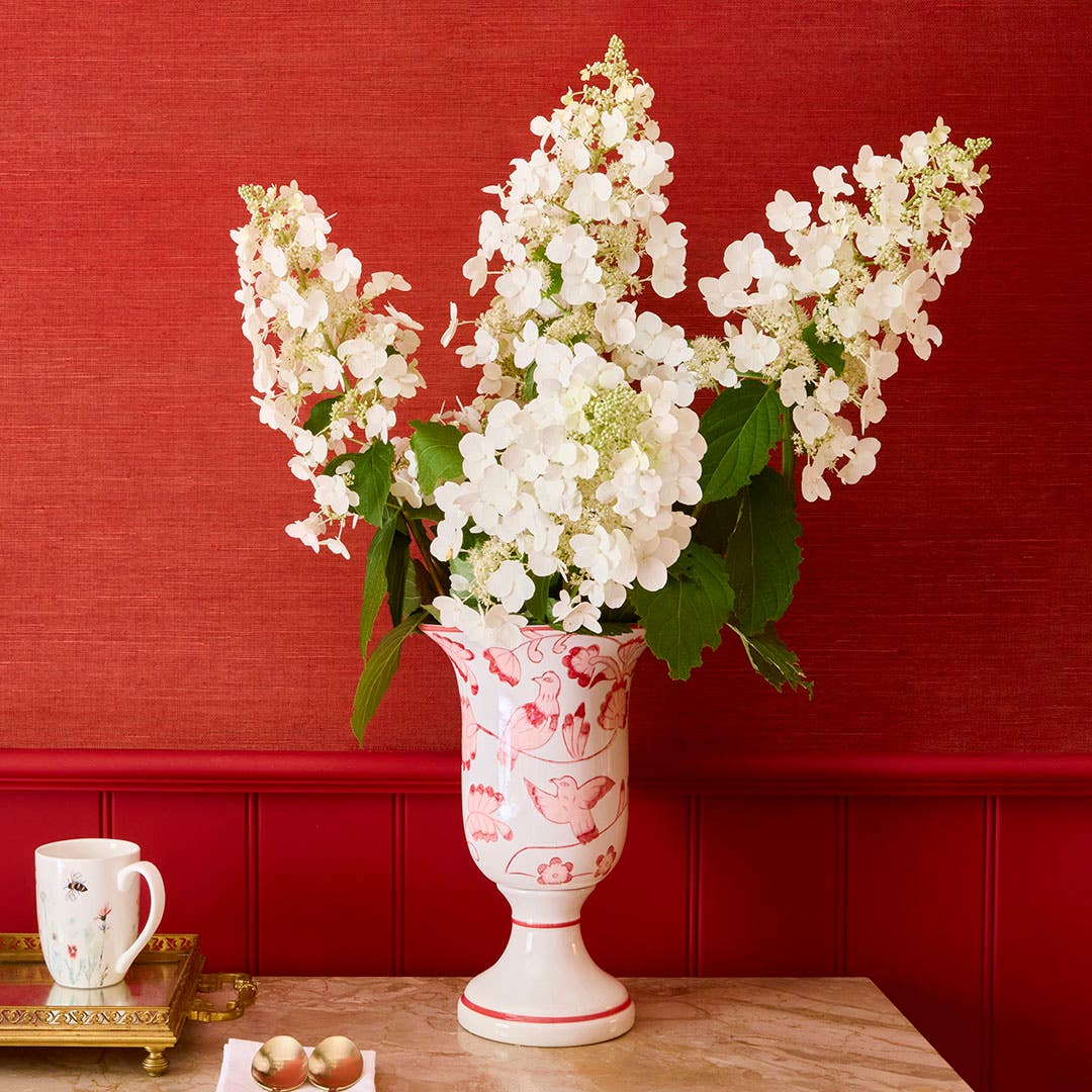 Embrace timeless style with the Empress Ceramic Vase in Large. Featuring a soft pink botanical and bird design, this ceramic vase is finished with a smooth glazed surface that complements its classic silhouette. A striking piece that brings refined elegance to your decor.