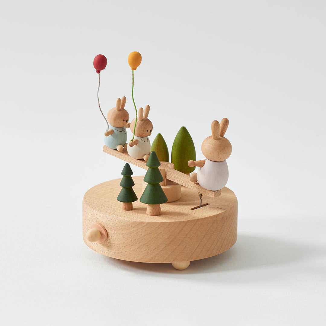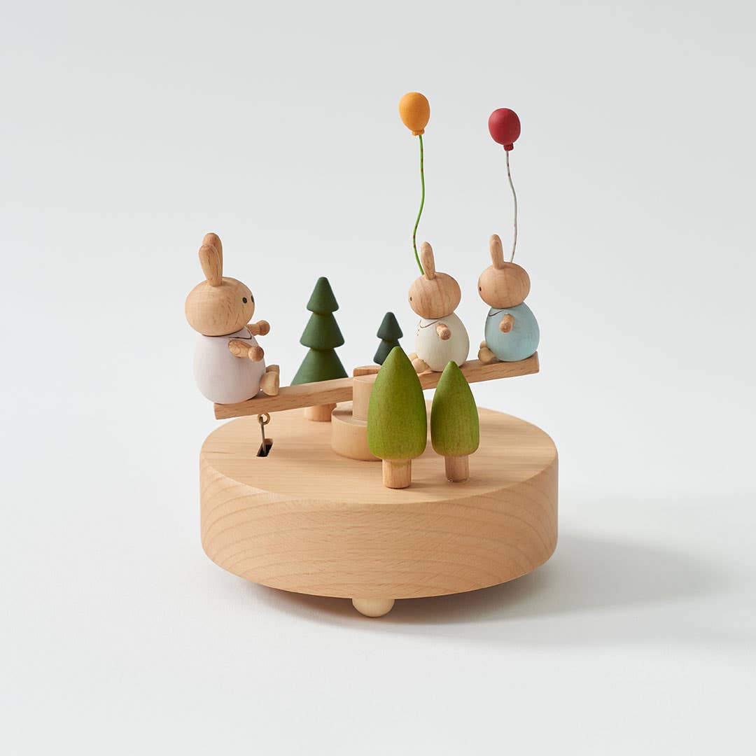 Watch the magic unfold with this Easter Music Box featuring see-sawing bunnies holding balloons in a natural finish. As the melody plays, the adorable bunnies gently move, creating a whimsical scene. Perfect as a gift or display piece, it brings joy and charm to any setting.